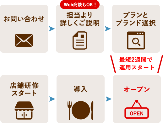 通常、デリバリー開業準備、申請をおこなうと通常約3~4ヶ月ほど かかるところ、 私どもは最短2週間でのスタートを可能にしています。